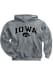 Size Chart for Youth Grey Iowa Hawkeyes Arch Mascot Long Sleeve Hooded Sweatshirt