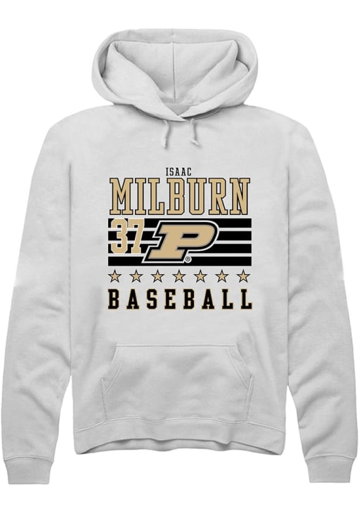 Isaac Milburn Rally Mens White Purdue Boilermakers NIL Striped Hooded Sweatshirt