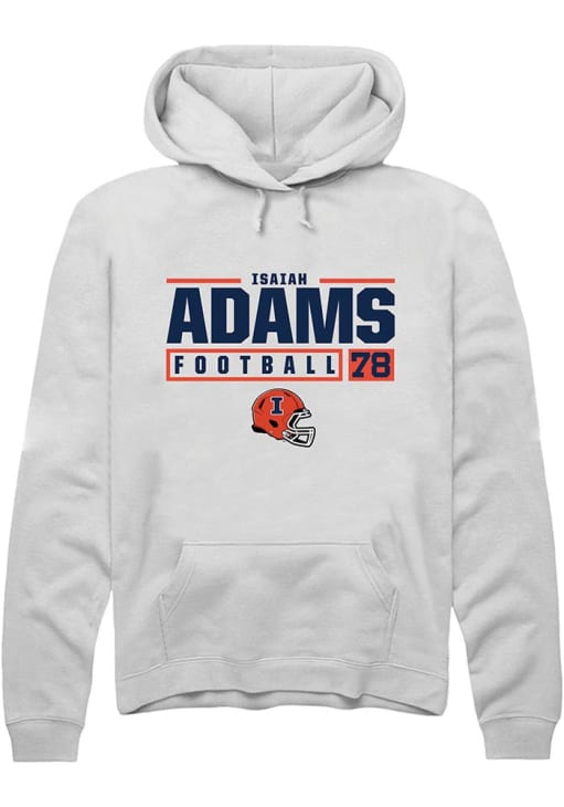 Isaiah Adams Rally Mens White Illinois Fighting Illini NIL Stacked Box Hooded Sweatshirt