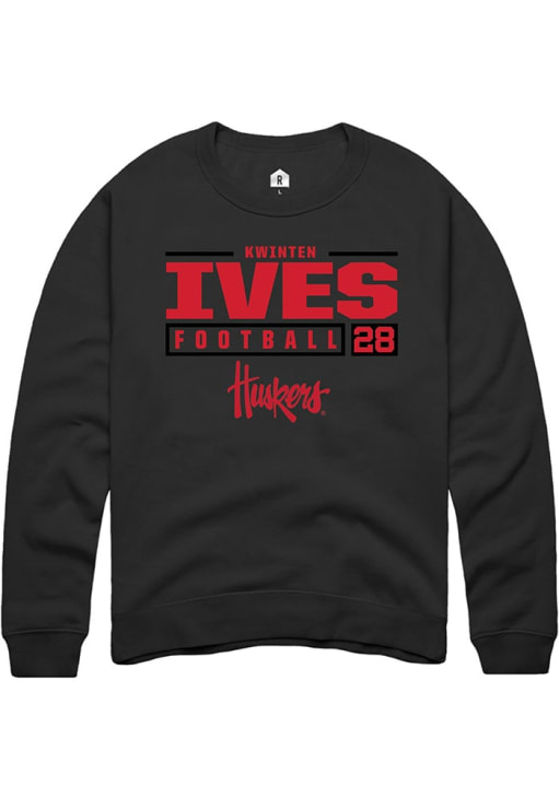Kwinten Ives Rally Mens Black Nebraska Cornhuskers NIL Stacked Box Crew Sweatshirt