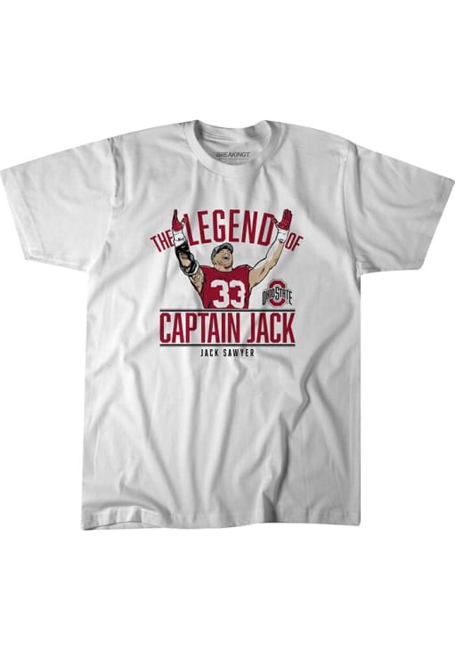 Jack Sawyer BreakingT Mens White Ohio State Buckeyes Captain Jack Fashion Player T Shirt