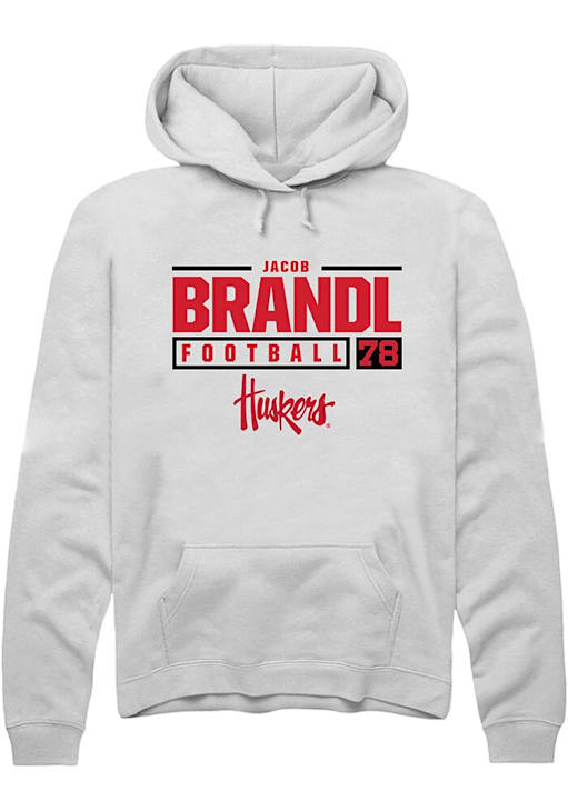 Jacob Brandl Rally Mens White Nebraska Cornhuskers NIL Stacked Box Hooded Sweatshirt