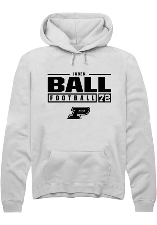 Jaden Ball Rally Mens White Purdue Boilermakers NIL Stacked Box Hooded Sweatshirt