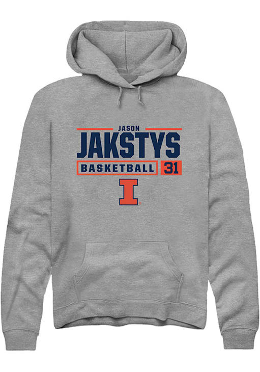 Jason Jakstys Rally Mens Graphite Illinois Fighting Illini NIL Stacked Box Hooded Sweatshirt