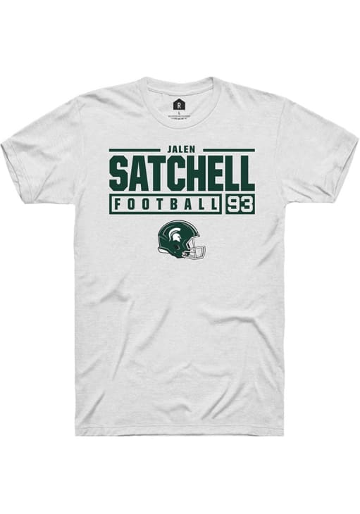Jalen Satchell White Michigan State Spartans NIL Stacked Box Short Sleeve T Shirt
