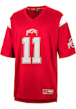 Get in the game with this ultimate Ohio State Buckeyes Mens Red Smith-Injigba Football Jersey. Wear this Jersey to the upcoming tailgate or game for your Buckeyes. With a embroidered tackle twill applique on the front and back of the jersey., this Mens Football Jersey is a great way to show your team spirit in style.