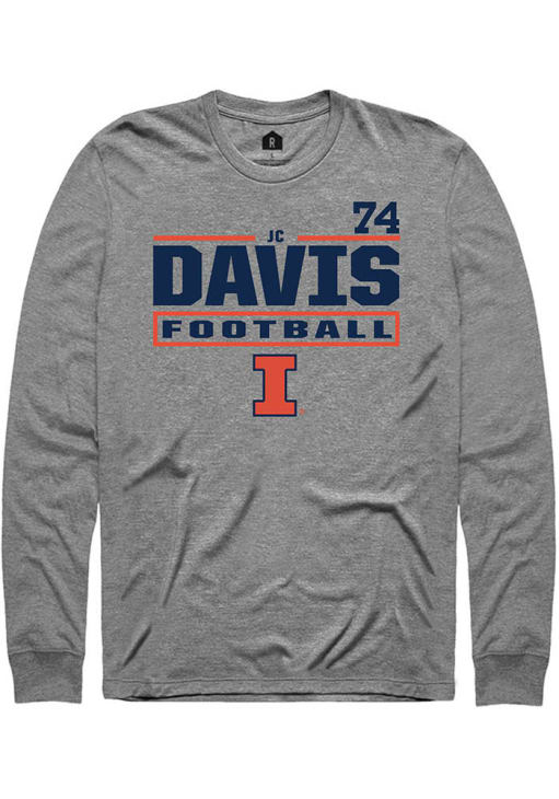 Jc Davis Rally Mens Graphite Illinois Fighting Illini Football NIL Stacked Box Tee