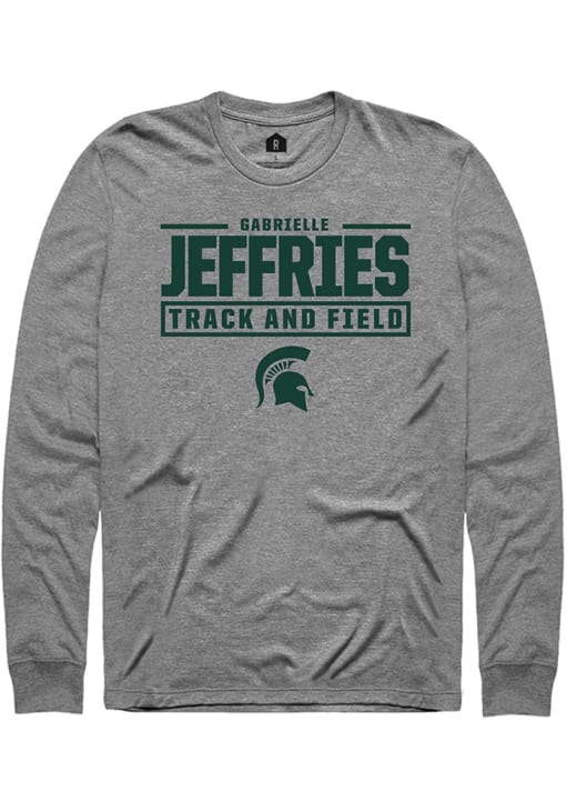 Embrace the spirit of your favorite player in this Michigan State Spartans Graphite NIL Stacked Box Gabrielle Jeffries Long Sleeve Player Tee! This Player T Shirt features a NIL graphic, so everyone will know you cheer for MSU, Gabrielle Jeffries! This is the perfect Spartans Player Tee for game days. Go Spartans!