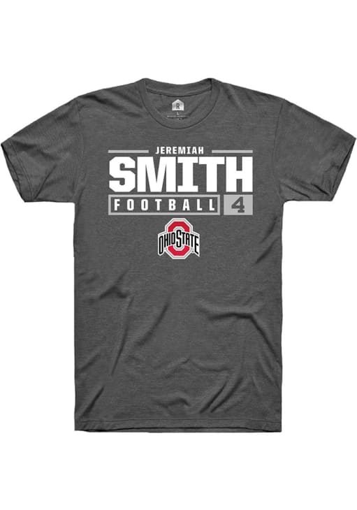 Jeremiah Smith Dark Grey Ohio State Buckeyes NIL Stacked Box Short Sleeve T Shirt