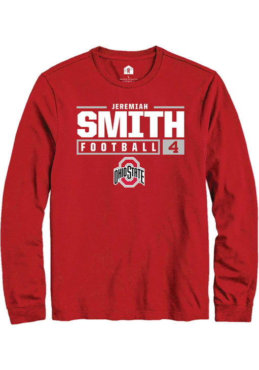 Jeremiah Smith Rally Mens Red Ohio State Buckeyes NIL Stacked Box Tee