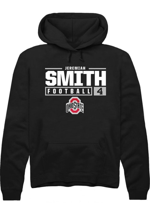 Jeremiah Smith Rally Mens Black Ohio State Buckeyes NIL Stacked Box Hooded Sweatshirt