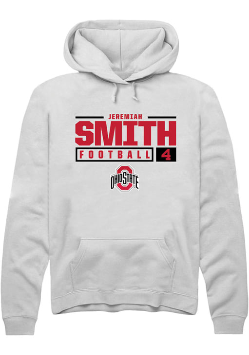 Jeremiah Smith Rally Mens White Ohio State Buckeyes NIL Stacked Box Hooded Sweatshirt