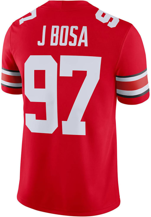 Get in the game with this ultimate Ohio State Buckeyes Mens Red Game Football Jersey. Wear this Jersey to the upcoming tailgate or game for your Buckeyes. With a screen printed #97 on front and back with 'Bosa' wordmark on back above numbers, this Mens Football Jersey is a great way to show your team spirit in style.