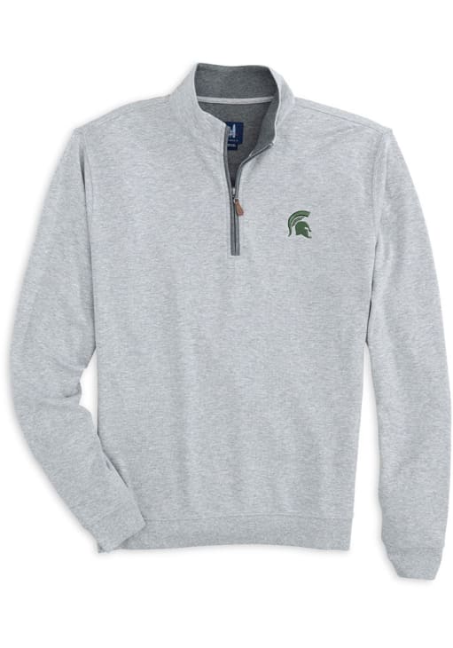 Embrace the warmth and showcase your Spartans pride with our Michigan State Spartans Long Sleeve Qtr Zip Pullover. This Mens Grey Sully Long Sleeve Pullover offers a team logo embroidered on left chest for the perfect combination of comfort and style. Elevate your everyday look with this must-have Michigan State Spartans Long Sleeve Qtr Zip Pullover.