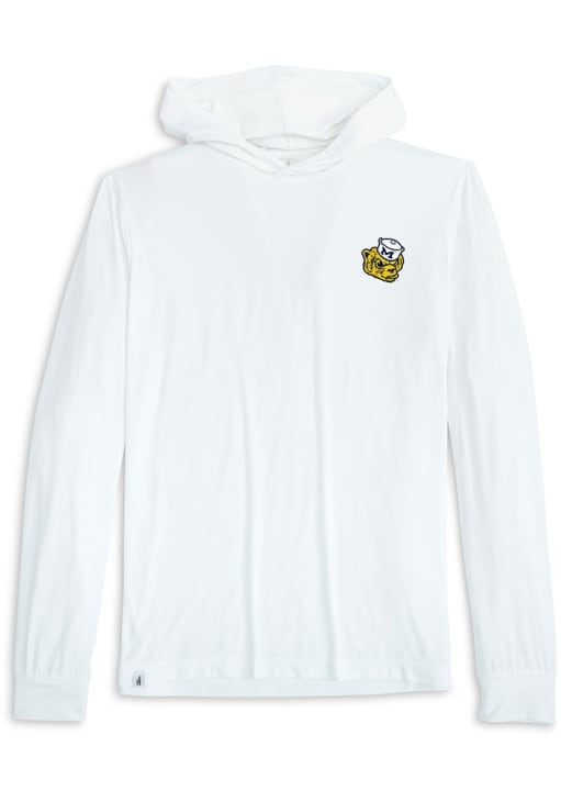 Embrace your Wolverines pride and showcase your team spirit with confidence in this Michigan Wolverines Long Sleeve Hoodie! Stay warm and stylish with the Michigan Mens White Talon Vault Hooded Sweatshirt. Designed with screen print team graphic on center chest, this Wolverines Long Sleeve Hoodie is a must-have for dedicated fans.