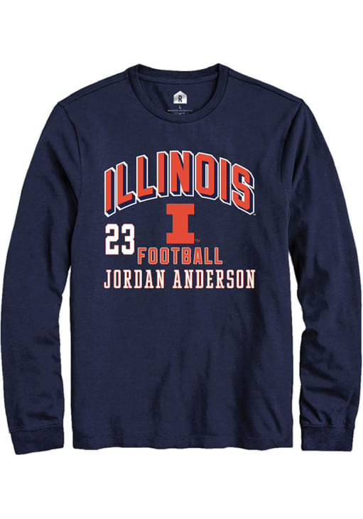 Embrace the spirit of your favorite player in this Illinois Fighting Illini Navy Blue Football NIL Arch Logo Jordan Anderson Long Sleeve Player Tee! This Player T Shirt features a NIL graphic, so everyone will know you cheer for Illinois, Jordan Anderson! This is the perfect Fighting Illini Player Tee for game days. Go, Illini, Go!
