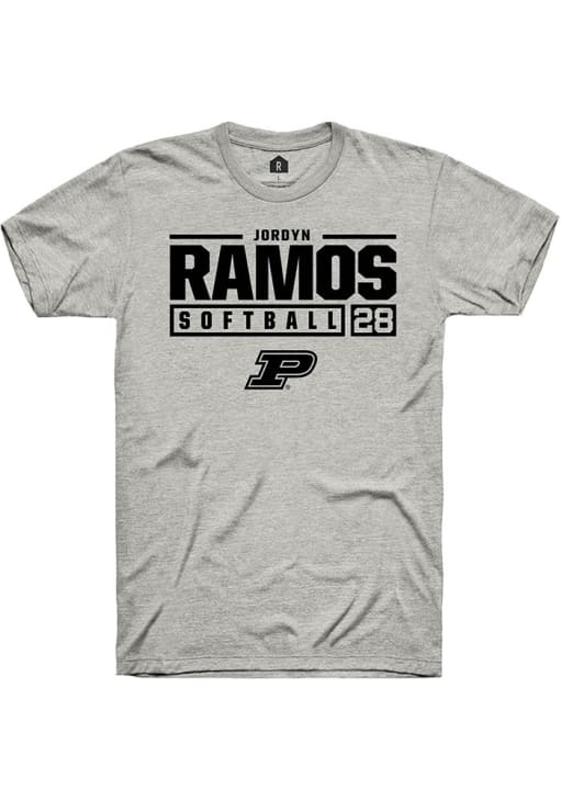 Jordyn Ramos Ash Purdue Boilermakers NIL Stacked Box Short Sleeve T Shirt
