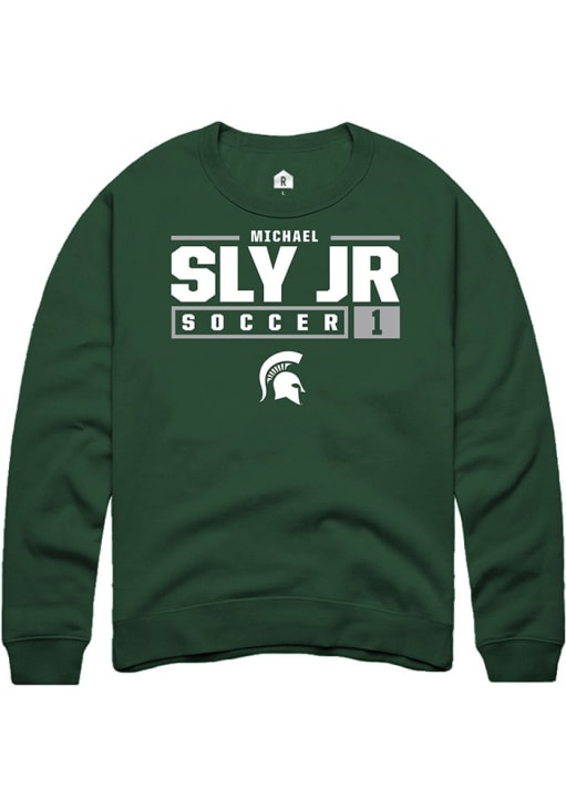 Michael Sly Jr Rally Mens Green Michigan State Spartans NIL Stacked Box Crew Sweatshirt