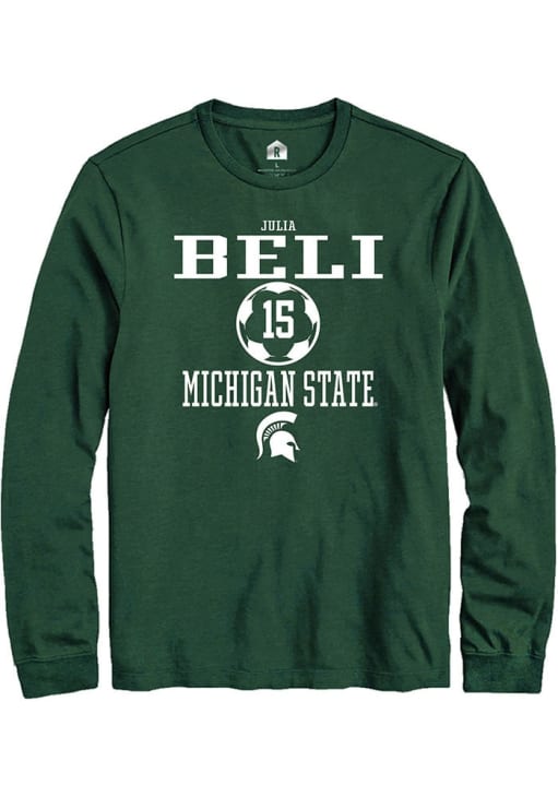 Show your Michigan State Spartans spirit in this MSU Green T Shirt! This MSU NIL Sport Icon Long Sleeve T Shirt makes a great layer for cooler nights cheering on the Spartans. Featuring a custom graphic with player's name and number, this Michigan State Spartans Long Sleeve Tee is an essential addition for every fan. Go Spartans!