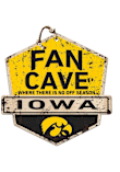 This Iowa Hawkeyes Fan Cave Rustic Badge Sign is great for decorating your home Hawkeyes team spirit. Take your team spirit to the next level with this Sign, which features a rustic look giving the appearance of tin. Go Hawkeyes!