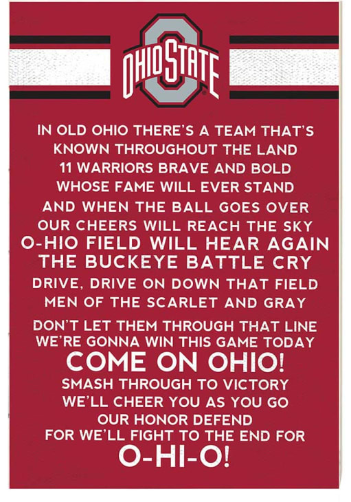 Product Details Product Details Team logo on frontFight song words on frontTeam colorWooden finishMakes a great giftImported Officially Licensed This Ohio State Buckeyes Fight Song Sign is great for decorating your home Buckeyes team spirit. Take your team spirit to the next level with this Sign, which features a fight song script. Go Buckeyes!