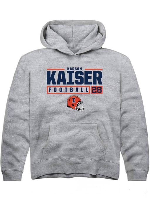Go to gamedays in style in this Youth Grey Illinois Fighting Illini Rally NIL Stacked Box Hooded Sweatshirt! This Fighting Illini Hoodie features a custom graphic with player's name and number that will be sure to keep you warm and cozy.