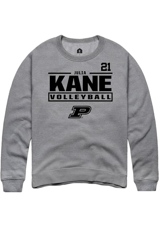 Julia Kane Rally Mens Graphite Purdue Boilermakers NIL Stacked Box Crew Sweatshirt