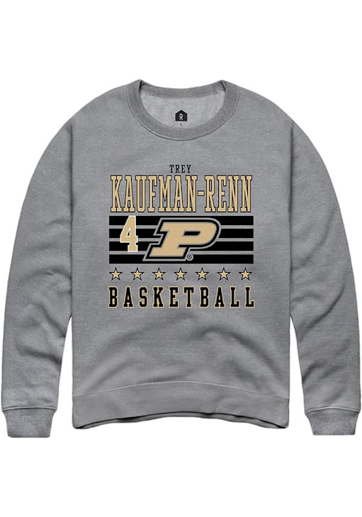 Trey Kaufman-Renn Rally Mens Grey Purdue Boilermakers NIL Striped Crew Sweatshirt