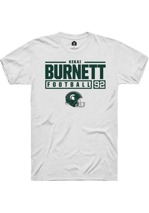 Kekai Burnett White Michigan State Spartans NIL Stacked Box Short Sleeve T Shirt