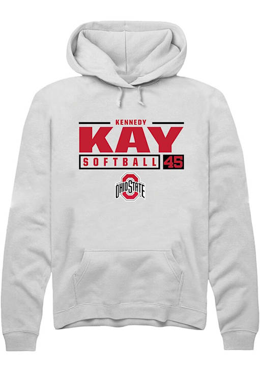 Kennedy Kay Rally Mens White Ohio State Buckeyes NIL Stacked Box Hooded Sweatshirt