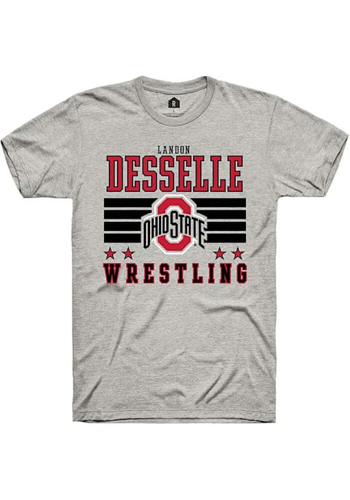 Landon Desselle Ash Ohio State Buckeyes NIL Striped Short Sleeve T Shirt