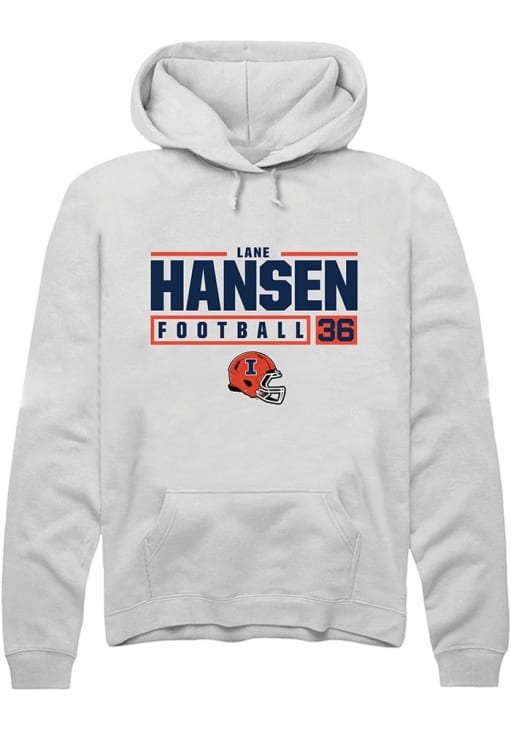Lane Hansen Rally Mens White Illinois Fighting Illini NIL Stacked Box Hooded Sweatshirt