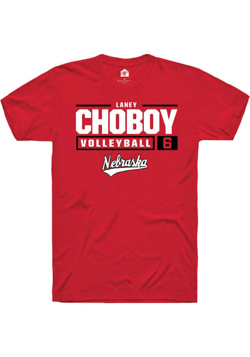 Laney Choboy Red Nebraska Cornhuskers NIL Stacked Box Short Sleeve T Shirt