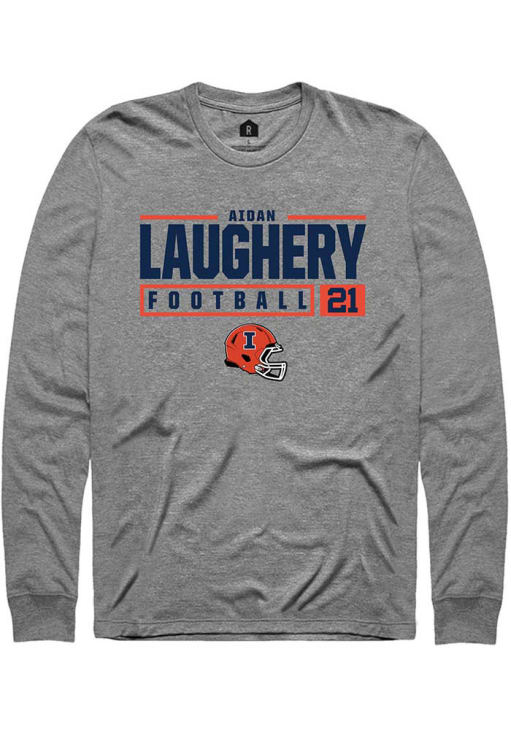 Show your Illinois Fighting Illini spirit in this Illinois Graphite T Shirt! This Illinois NIL Stacked Box Long Sleeve T Shirt makes a great layer for cooler nights cheering on the Fighting Illini. Featuring a custom graphic with player's name and number, this Illinois Fighting Illini Long Sleeve Tee is an essential addition for every fan. Go, Illini, Go!