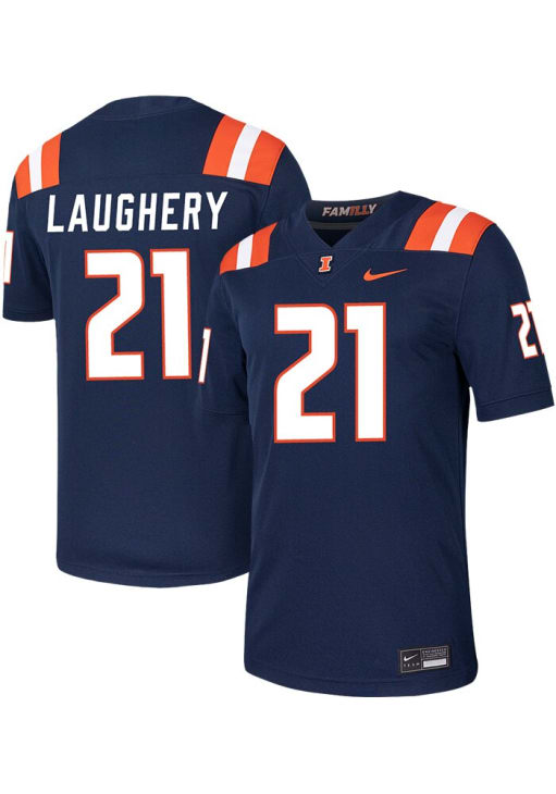 Aidan Laughery Nike Mens Navy Blue Illinois Fighting Illini NIL Game Name And Number Football Jers..