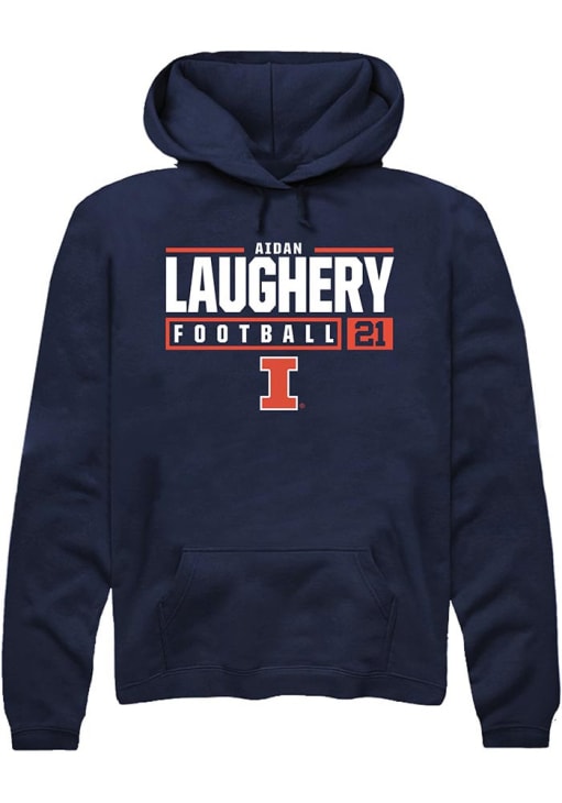 Aidan Laughery Rally Mens Navy Blue Illinois Fighting Illini NIL Stacked Box Hooded Sweatshirt