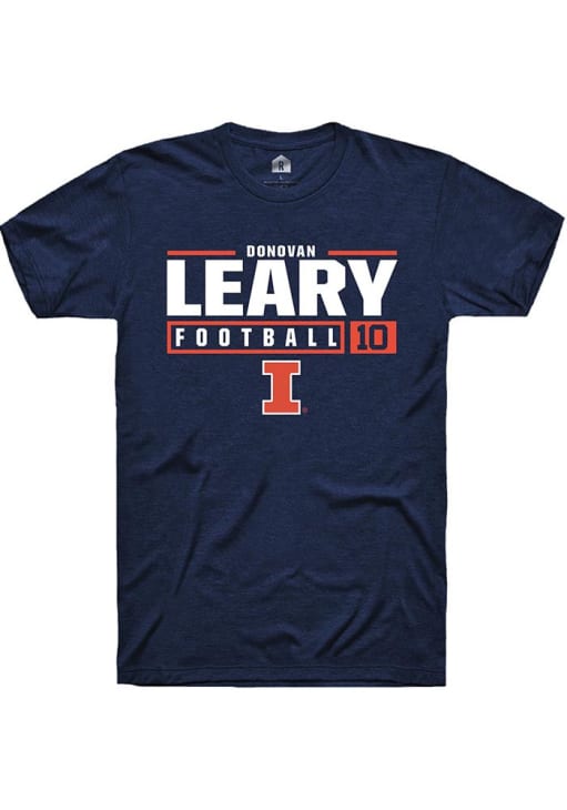 Donovan Leary Navy Blue Illinois Fighting Illini NIL Stacked Box Short Sleeve T Shirt