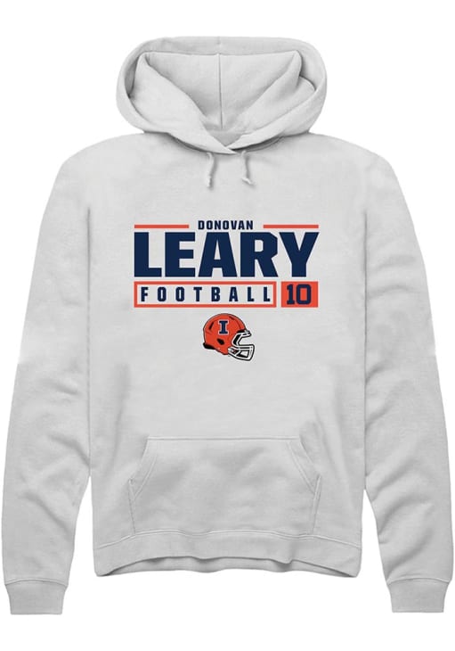 Donovan Leary Rally Mens White Illinois Fighting Illini NIL Stacked Box Hooded Sweatshirt