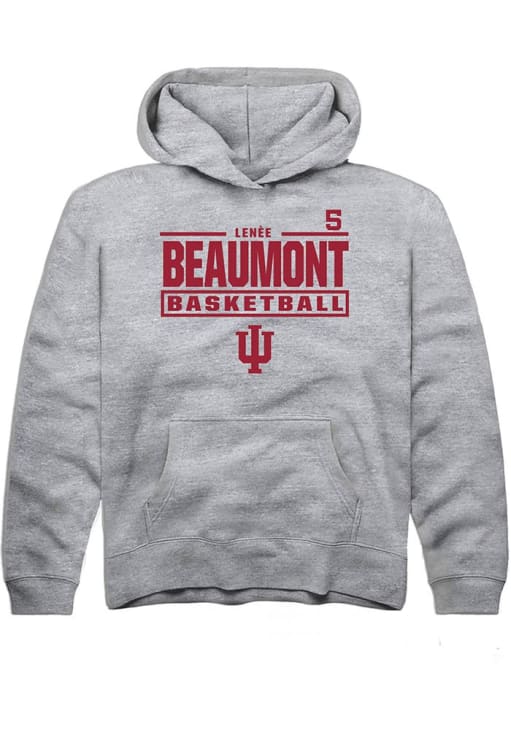 Lenée Beaumont Rally Youth Grey Indiana Hoosiers NIL Stacked Box Long Sleeve Hooded Sweatshirt