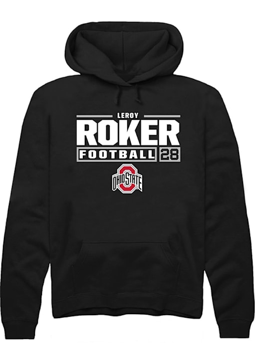 Leroy Roker Rally Mens Black Ohio State Buckeyes Football NIL Stacked Box Hooded Sweatshirt