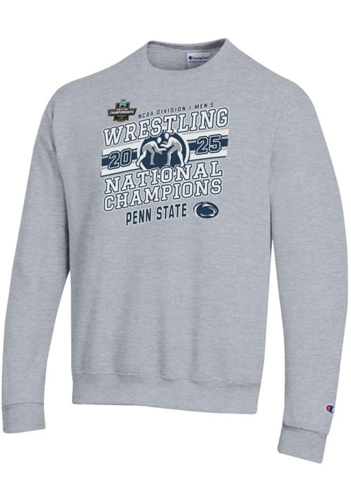Gear up for the ultimate game day experience with this remarkable Penn State Nittany LionsMens Grey 2025 Wrestling National Champions Powerblend Crew Sweatshirt! Designed with the true fan in mind, this Nittany Lions Long Sleeve Crew Sweatshirt features a printed team graphic. Stay warm and comfortable with this Mens Penn State Nittany Lions Crew Sweatshirt.