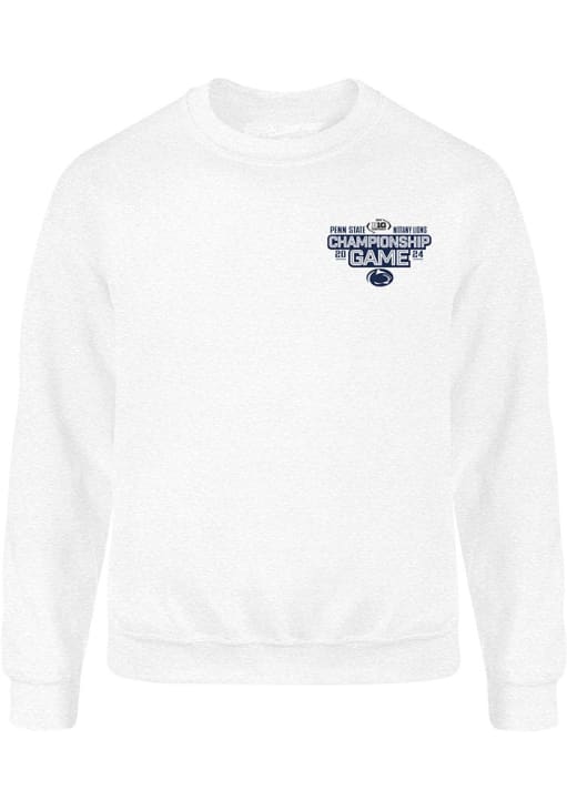 Size Chart for Mens White Penn State Nittany Lions 2024 Big Ten Football Championship Front Back Crew Sweatshirt