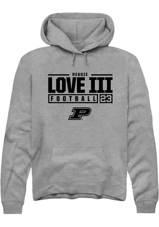 Reggie Love III Rally Mens Graphite Purdue Boilermakers NIL Stacked Box Hooded Sweatshirt