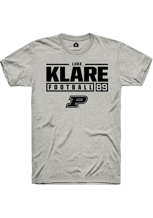 Luke Klare Ash Purdue Boilermakers NIL Stacked Box Short Sleeve T Shirt