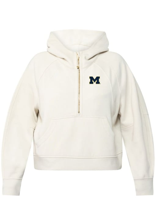 Embrace your Wolverines pride and showcase your team spirit with confidence in this Michigan Wolverines Long Sleeve Hoodie! Stay warm and stylish with the Michigan Womens Ivory Scuba Hooded Sweatshirt. Designed with screen print team logo, this Wolverines Long Sleeve Hoodie is a must-have for dedicated fans.