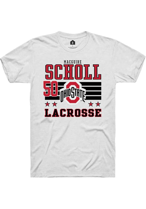 Display your team spirit with this remarkable Ohio State Buckeyes Rally White NIL Striped Short Sleeve T Shirt! The The Ohio State University Short Sleeve Tee showcases a custom graphic with player's name and number that truly sets it apart. Stand out from the crowd and proudly declare your allegiance to the Buckeyes with this exceptional White The Ohio State University T Shirt. Go Buckeyes!