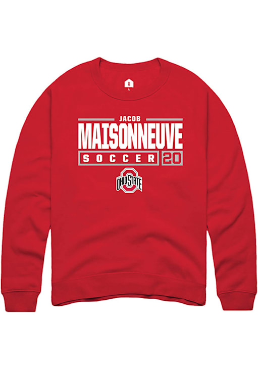 Jacob Maisonneuve Rally Mens Red Ohio State Buckeyes NIL Stacked Box Crew Sweatshirt