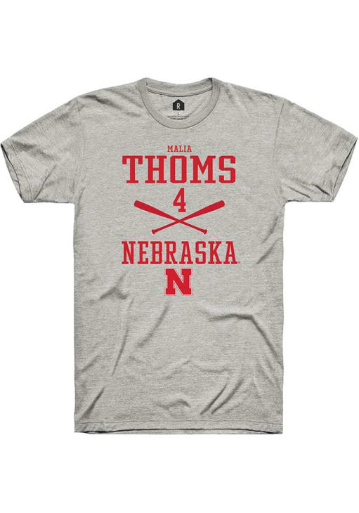 Malia Thoms Ash Nebraska Cornhuskers NIL Sport Icon Short Sleeve T Shirt