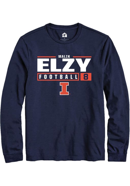 Malik Elzy Rally Mens Navy Blue Illinois Fighting Illini NIL Stacked Box Tee