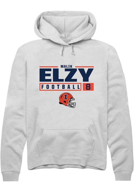 Malik Elzy Rally Mens White Illinois Fighting Illini NIL Stacked Box Hooded Sweatshirt